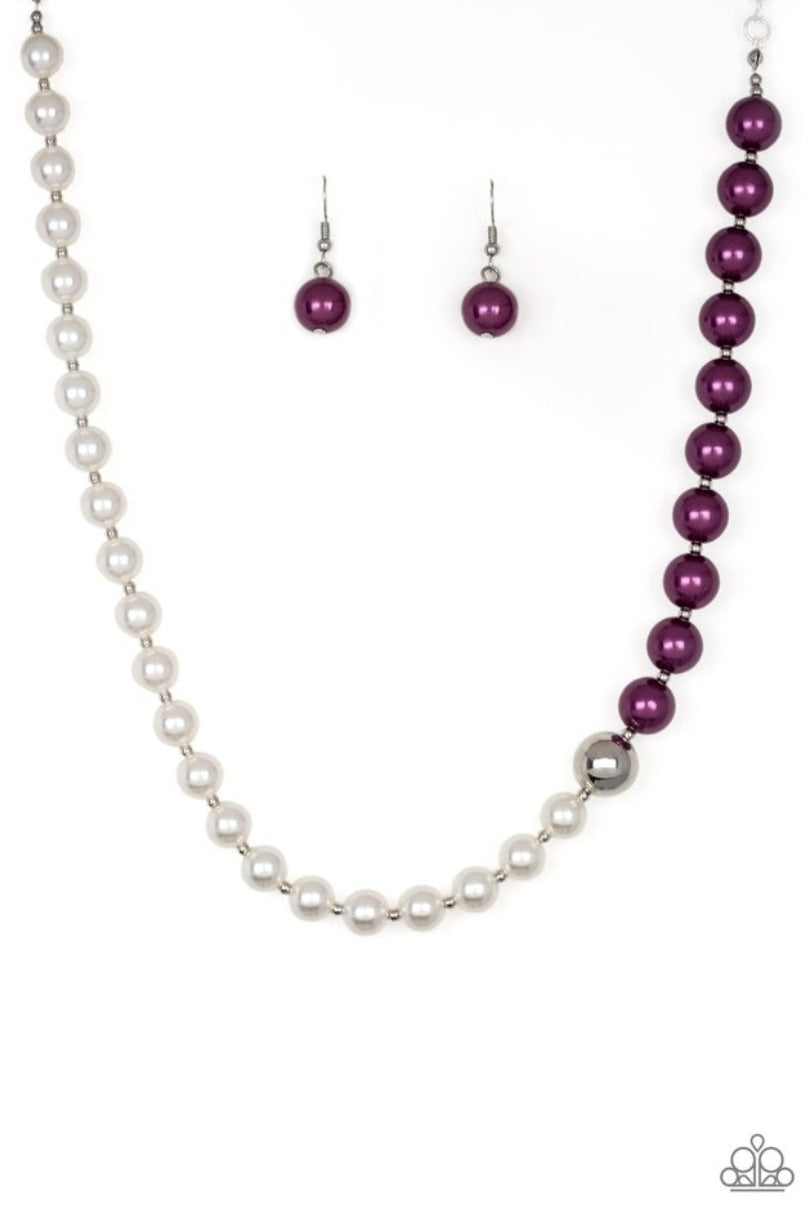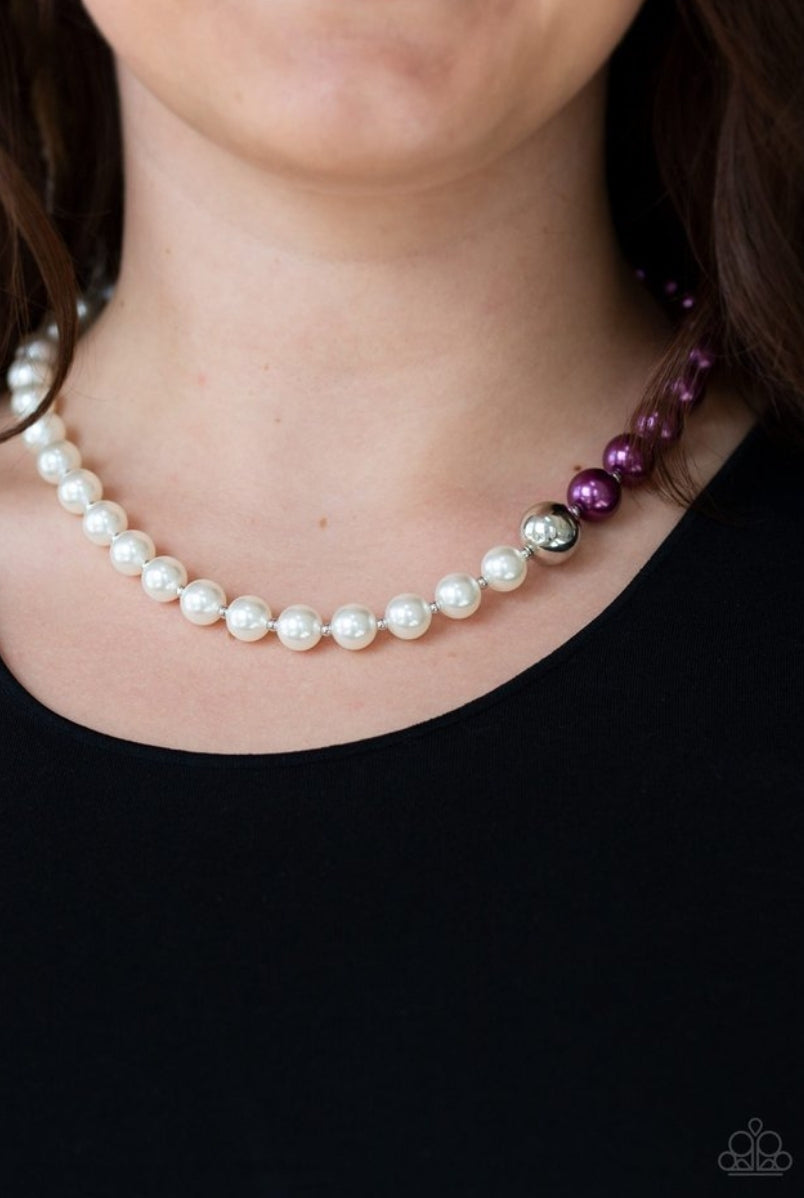 Separated by dainty silver beads, classic white pearls merge into purple pearls for a contemporary look. Infused with a shiny silver bead, the timeless pearls collect below the collar for a refined asymmetrical look. Features an adjustable clasp closure.