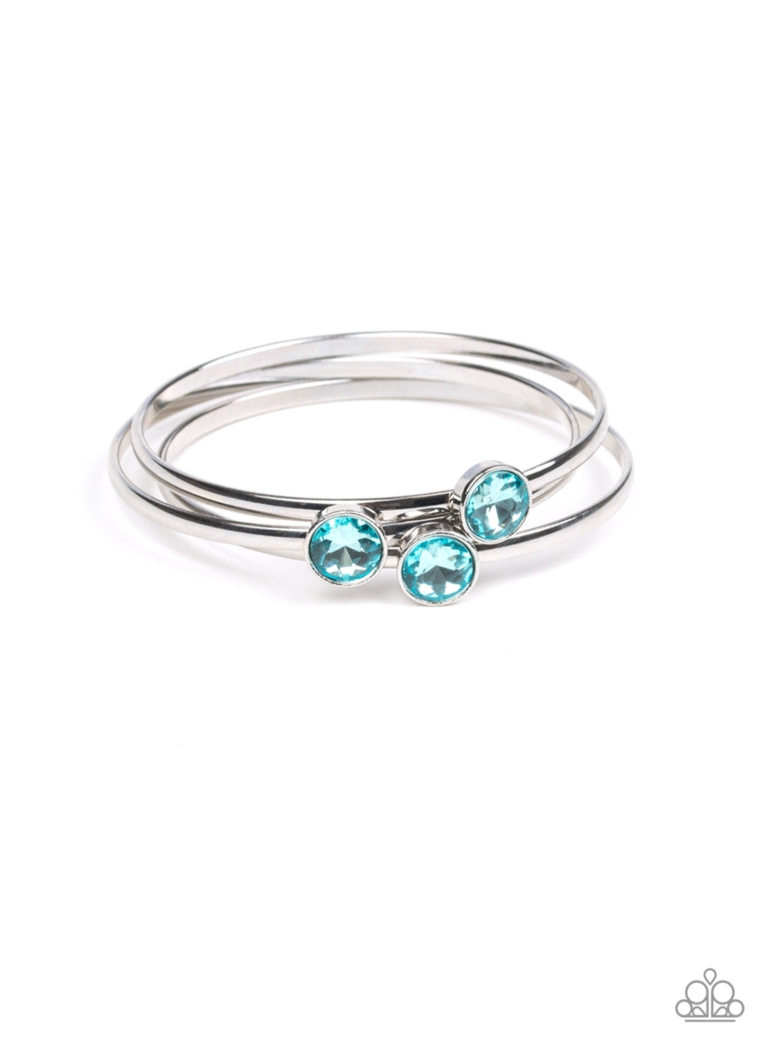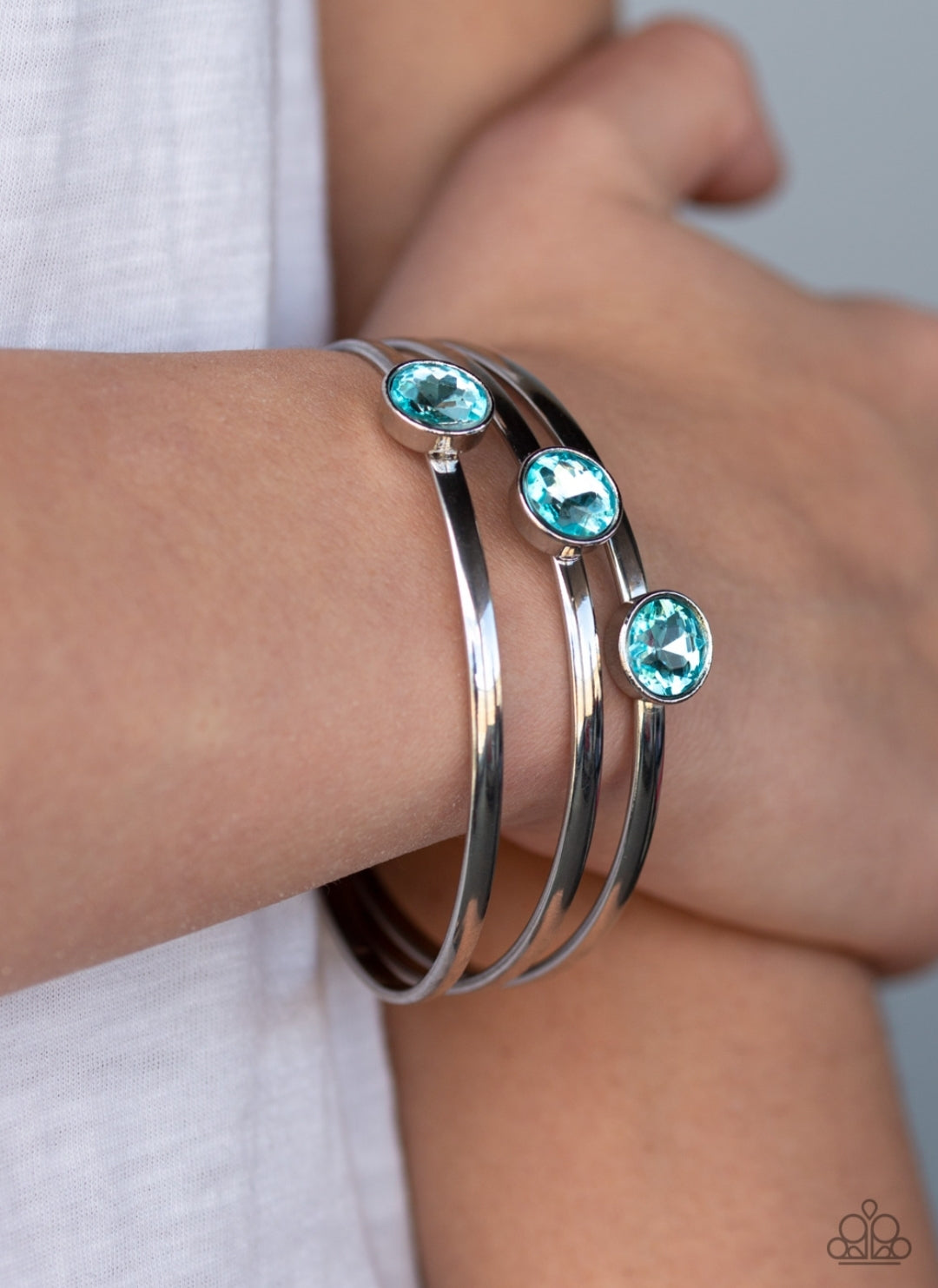 Encased in sleek silver frames, dazzling blue gems sit atop thick silver bangles for a refined flair.