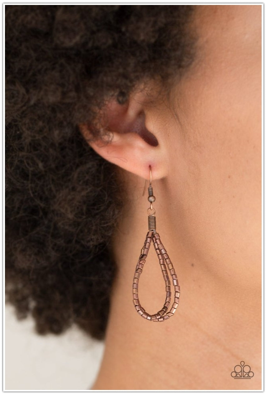 Strand after strand of metallic copper seed beads fall together to create a bold statement piece. Features an adjustable clasp closure.