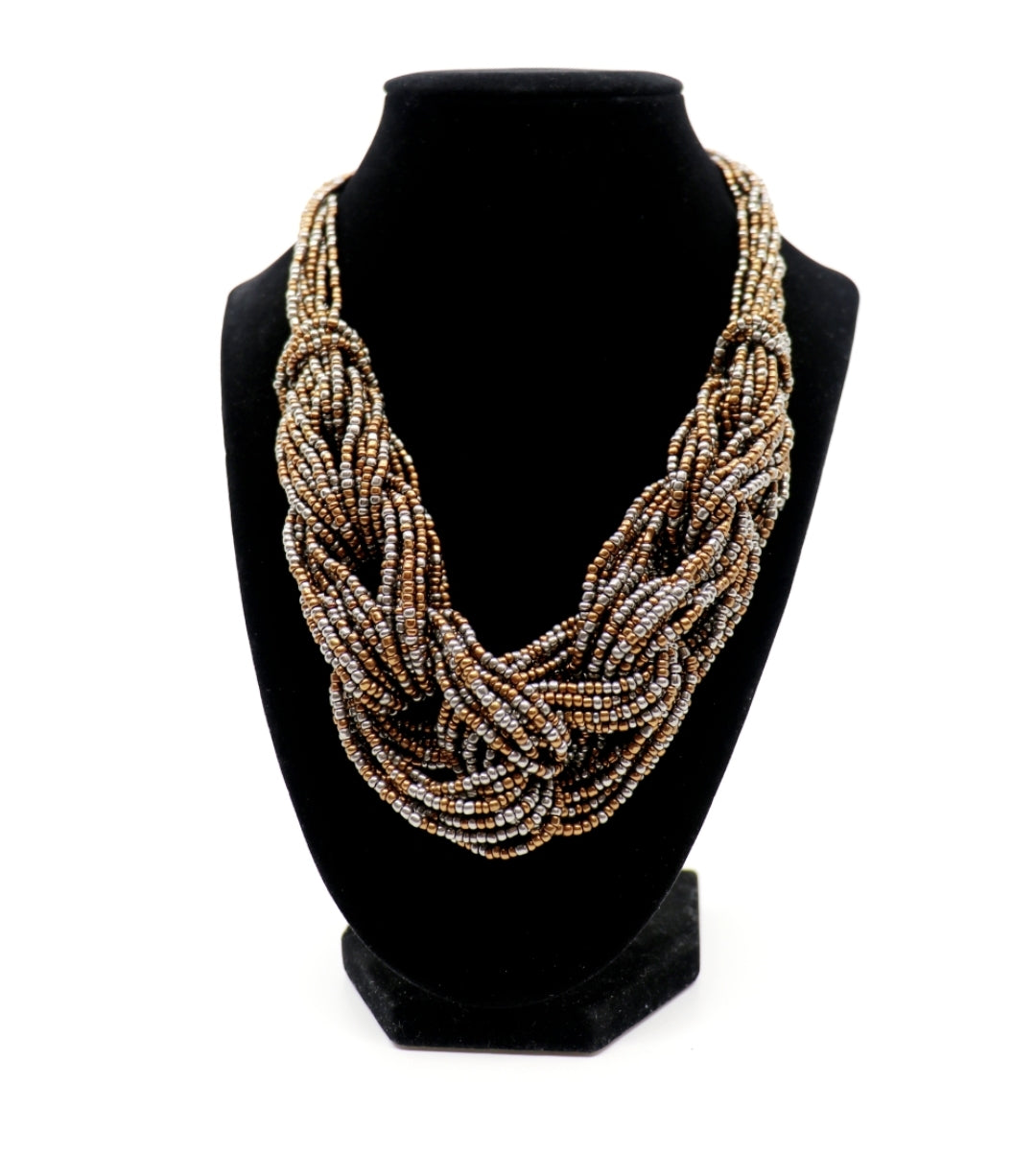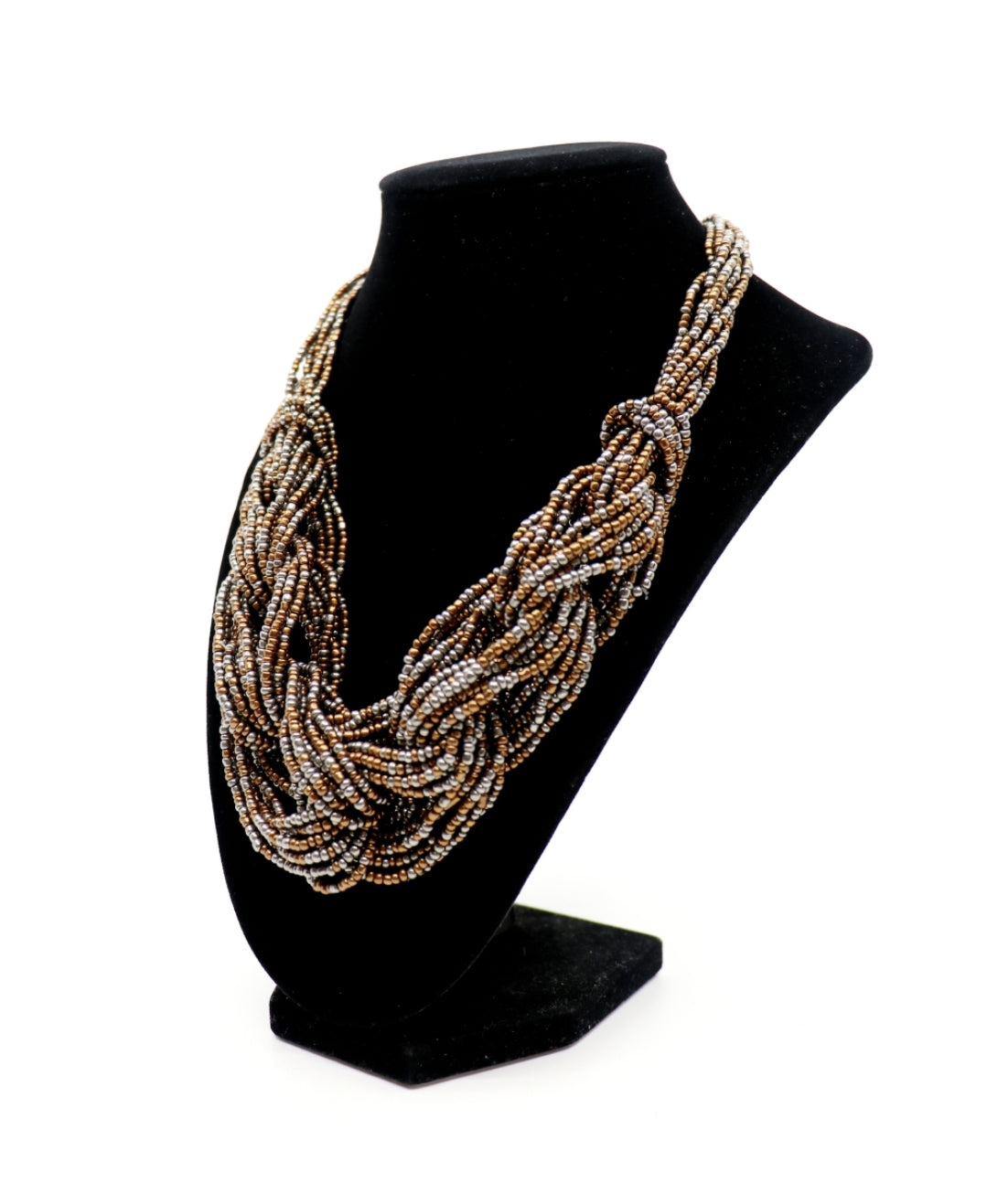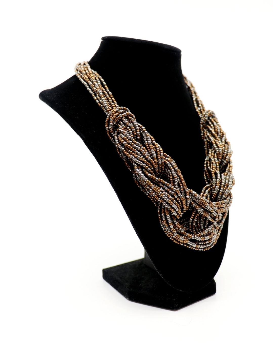 Brushed in a flashy finish, countless strands of copper and gunmetal seed beads weave into a bulky square braid below the collar for a glamorous look. Features an adjustable clasp closure.