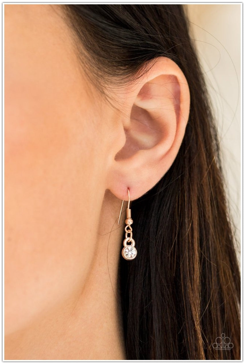 Dainty white rhinestones, flat rose gold teardrops, and glistening rose gold discs trickle from mismatched rose gold chains below the collar for a refined look. Features an adjustable clasp closure.