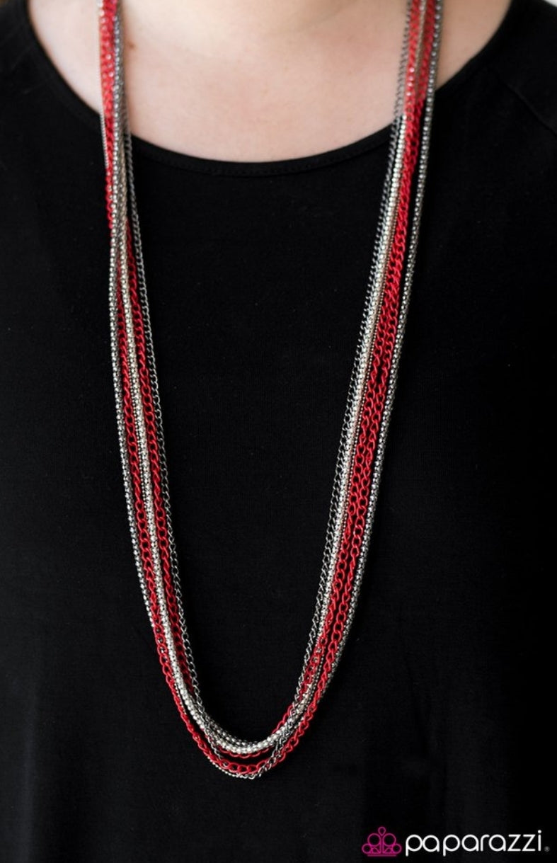 Painted in a fiery finish, bright red chains join shimmery gunmetal and silver chains. Shimmery silver and gunmetal popcorn chains join the colorful layers, adding shimmery metallic texture to the spunky mixed palette. Features an adjustable clasp closure.
