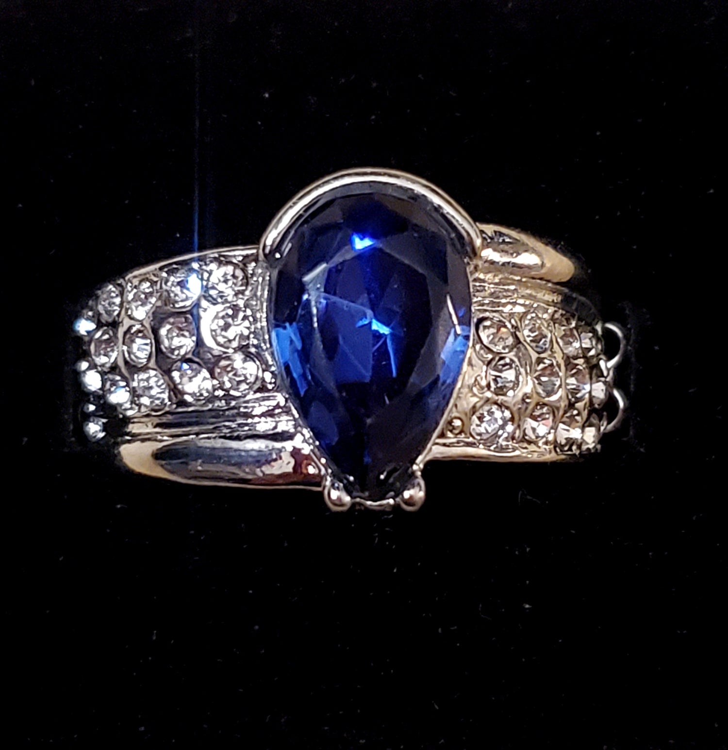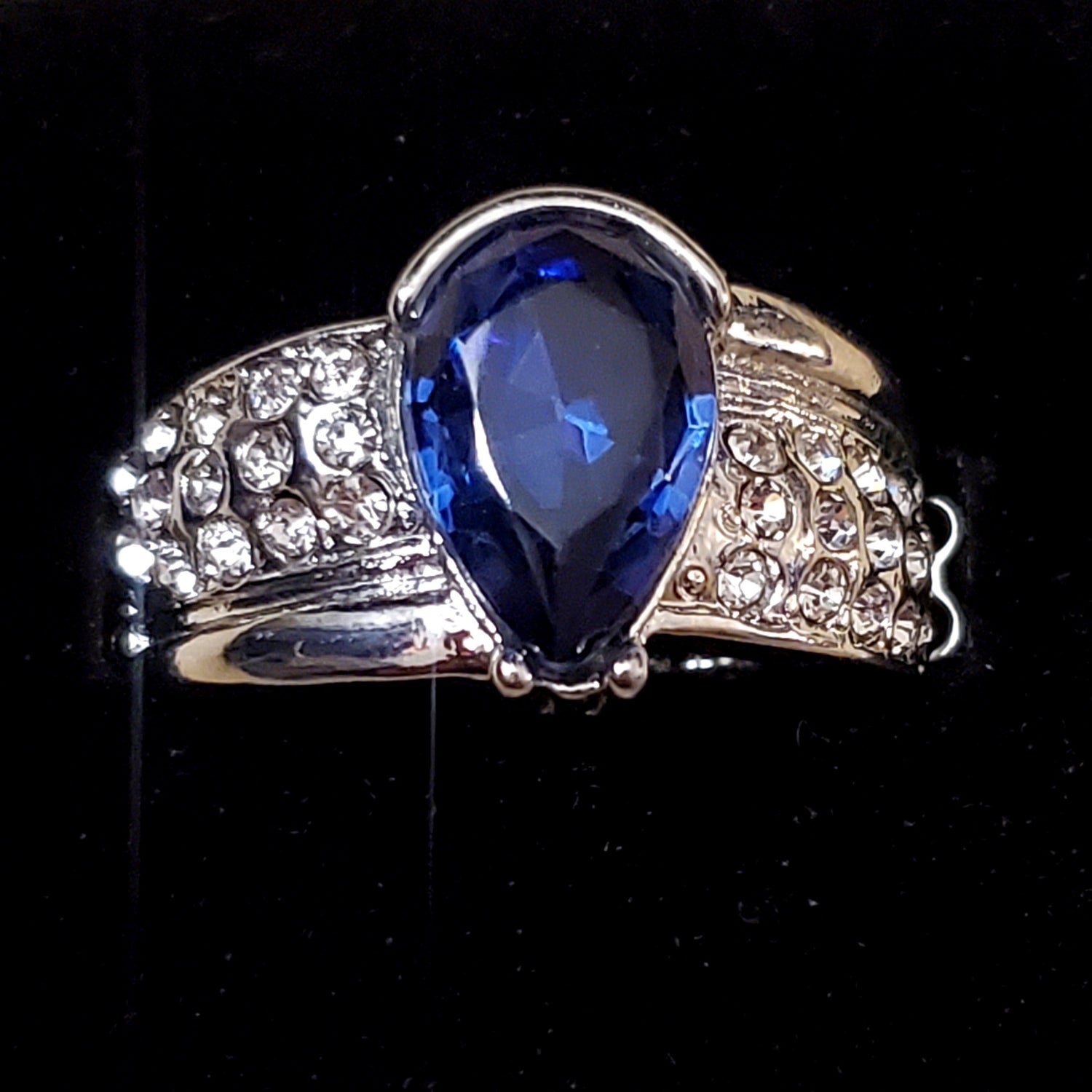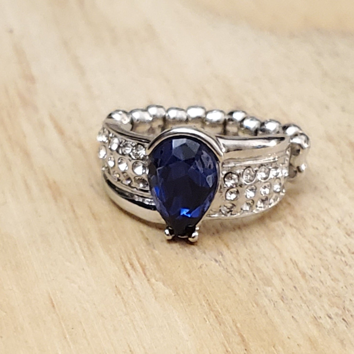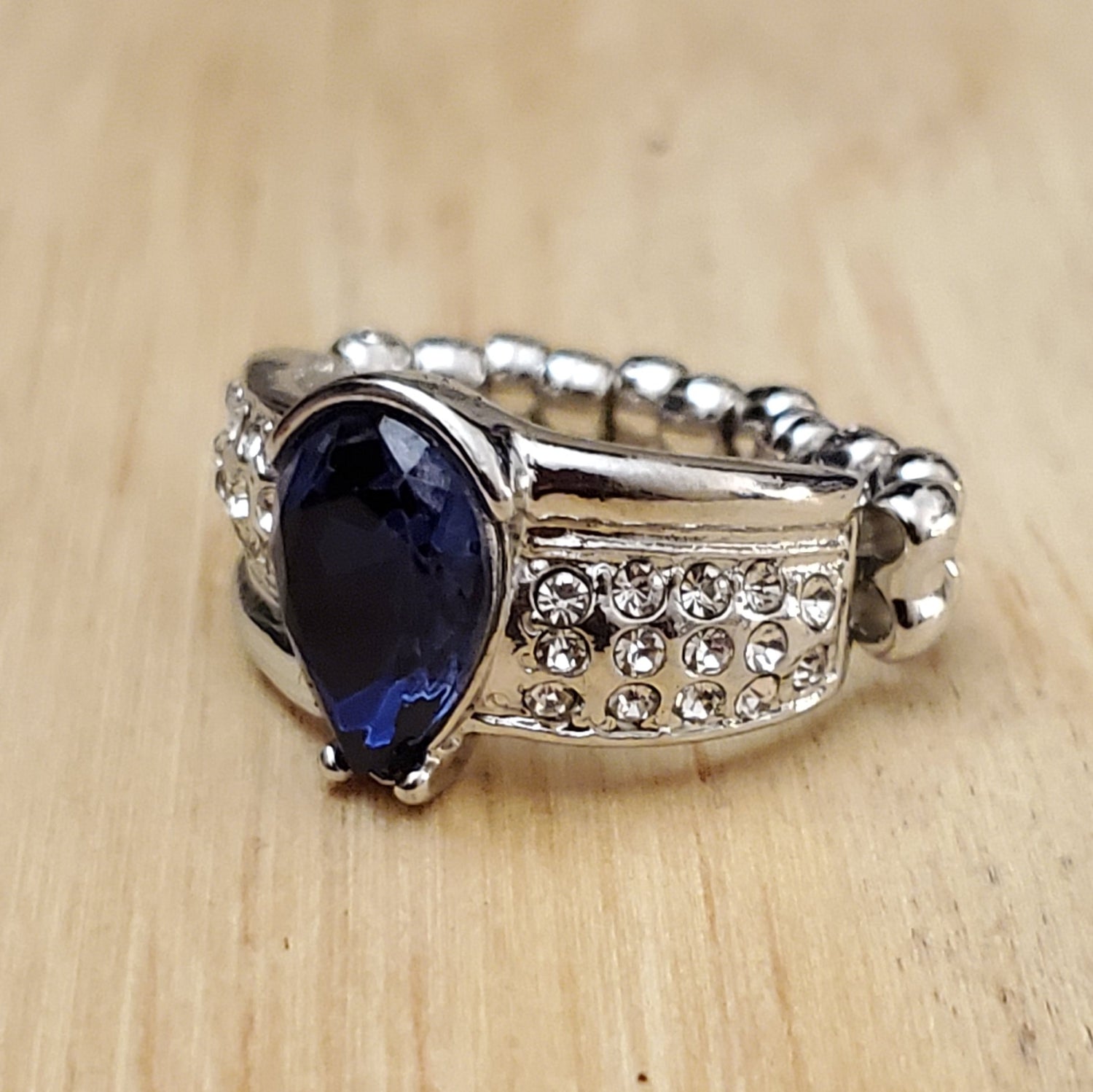 Fashion Fix Exclusive Silver colored ring with blue stone. Stretchy back.