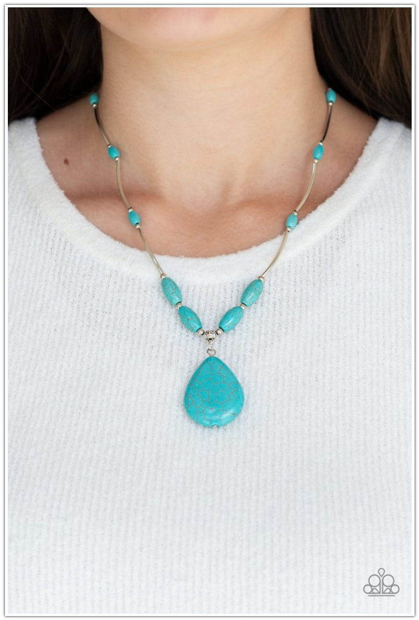 A collection of shiny silver beads and refreshing turquoise stone beads are threaded along an invisible wire below the collar. A dramatically oversized turquoise teardrop pendant swings from the bottom of a seasonal flair. Features an adjustable clasp closure.