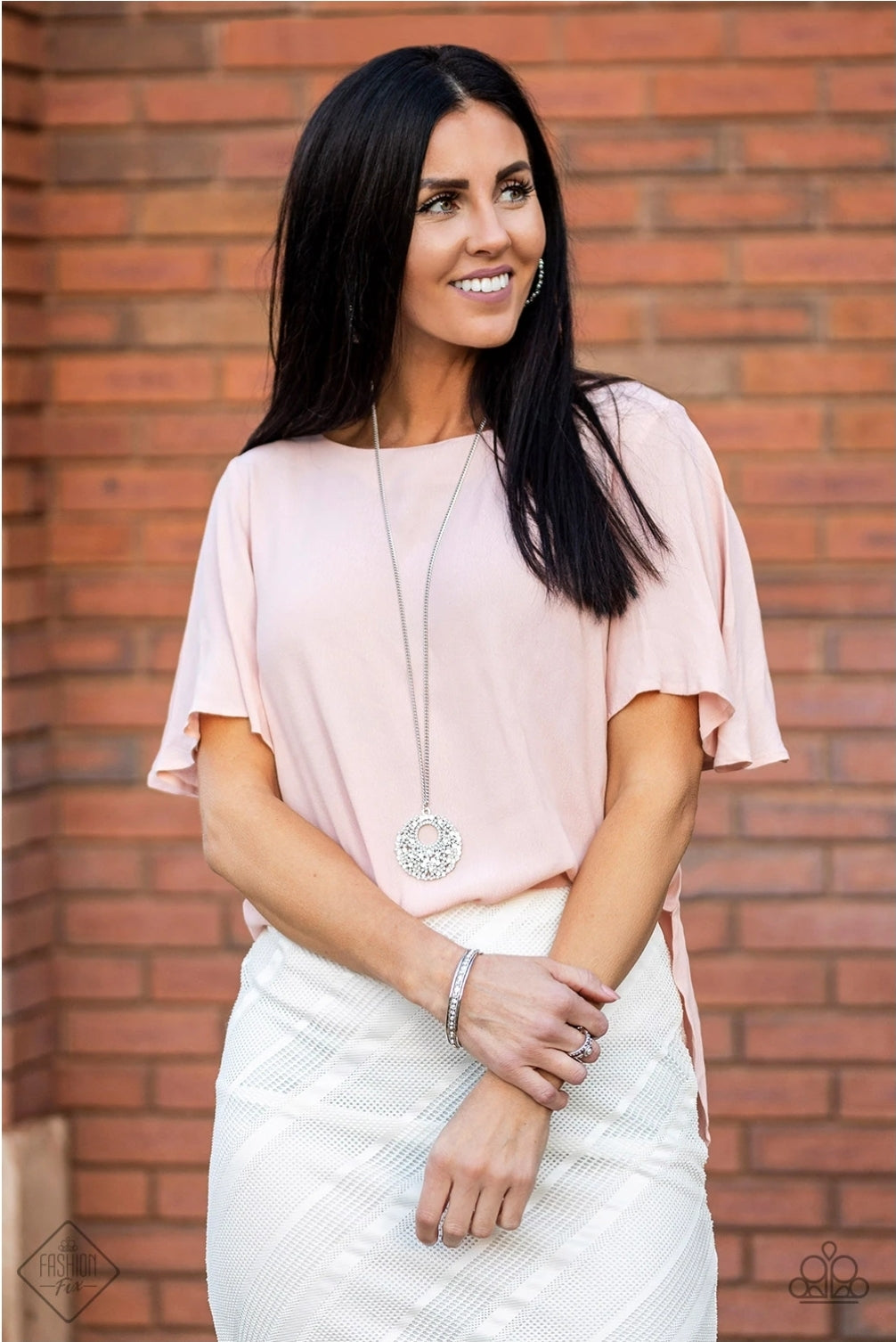 Necklace: Pearl Panache - A scatter of dainty white pearls and glassy white rhinestones coalesce into a dramatic circular pendant that swings at the bottom of a lengthened silver chain for a timeless look. Features an adjustable clasp closure.