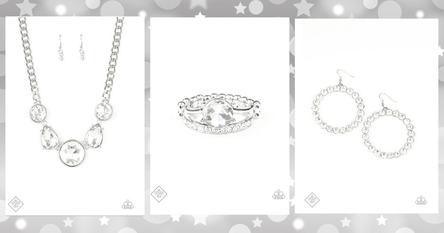 Set: All The World's My Stage (Necklace), Welcome To The GLAM-boree (Earrings), Center Stage Shimmer (Ring) - White