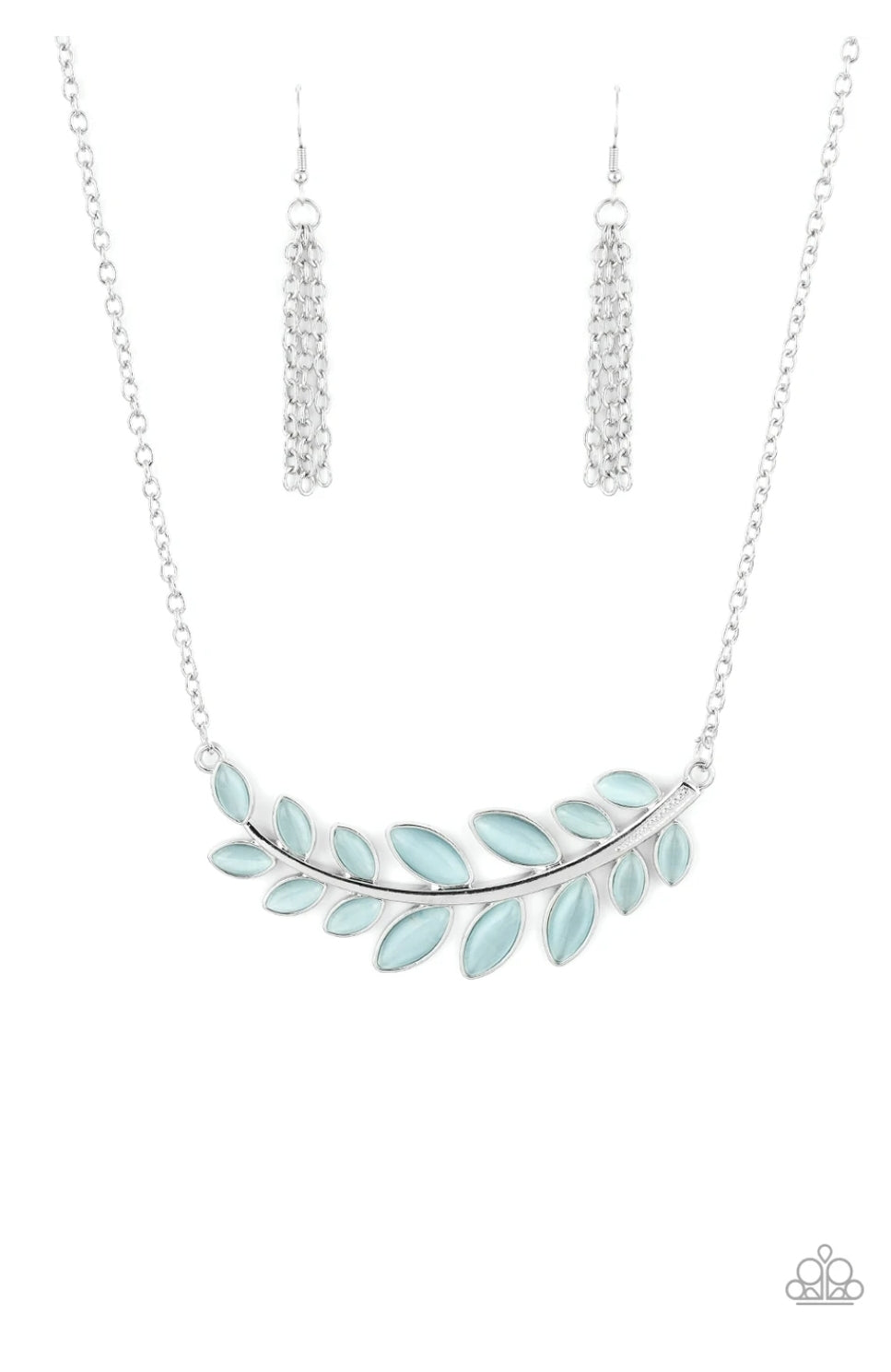 Dotted with tranquil blue cat's eye stones, a leafy silver branch delicately curves below the collar for a whimsical look. Features an adjustable clasp closure.