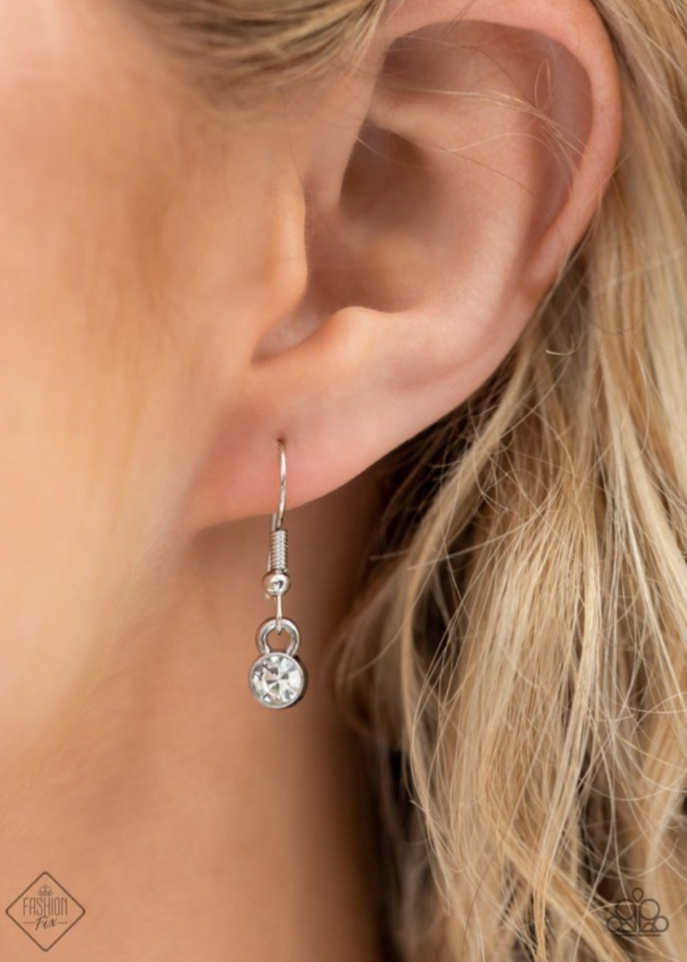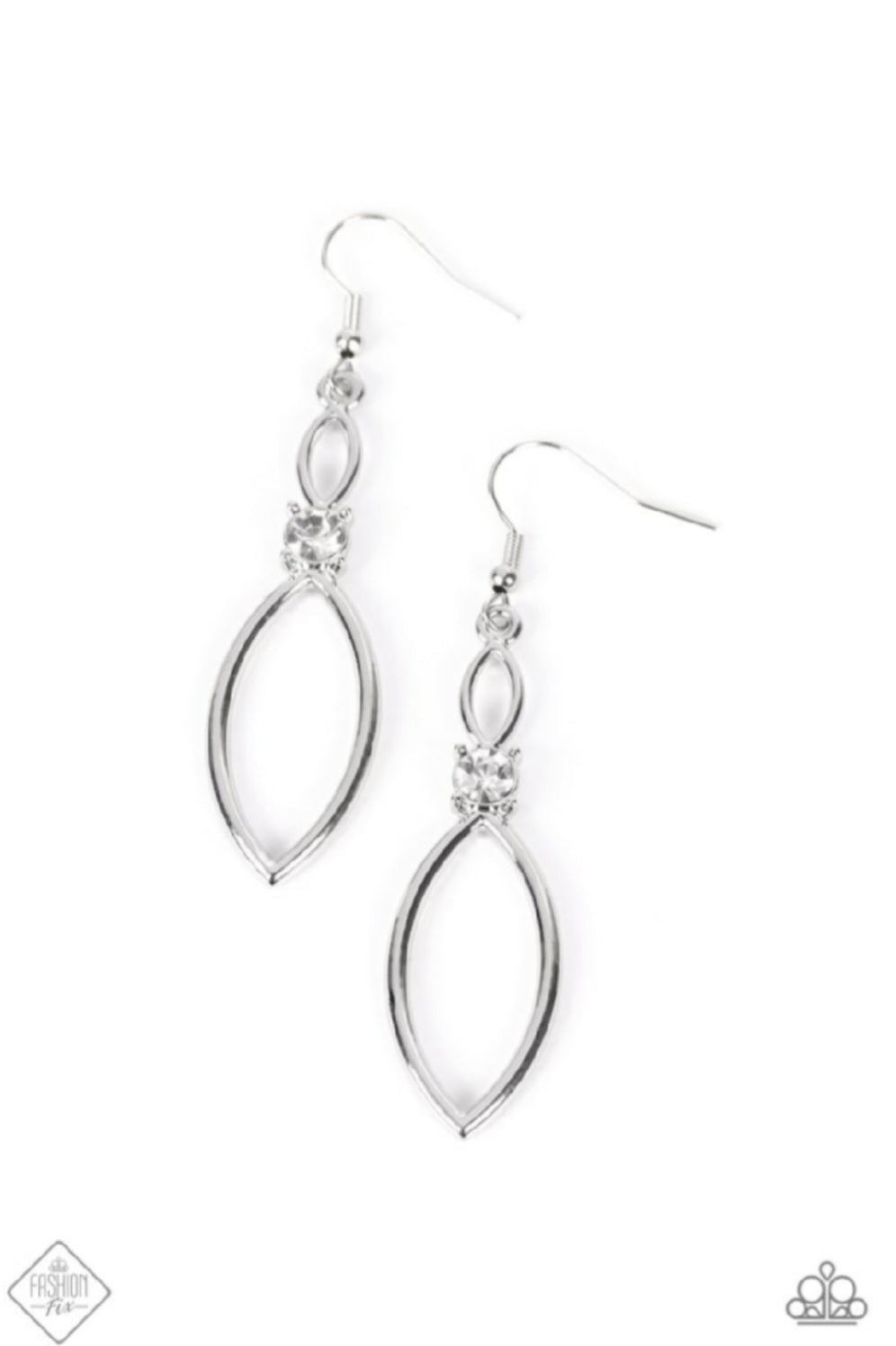 Earring: "Plucked Petals - White" (P5RE-WTXX-597IY) --- A dainty marquise-shaped silver frame tipped on its end, is connected to a brilliant white rhinestone that sits atop a larger marquise-shaped frame, creating a simple yet sophisticated lure. Earring attaches to a standard post fitting. Sold as one pair of earrings.