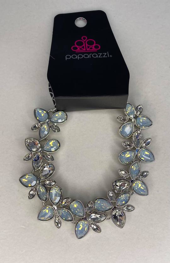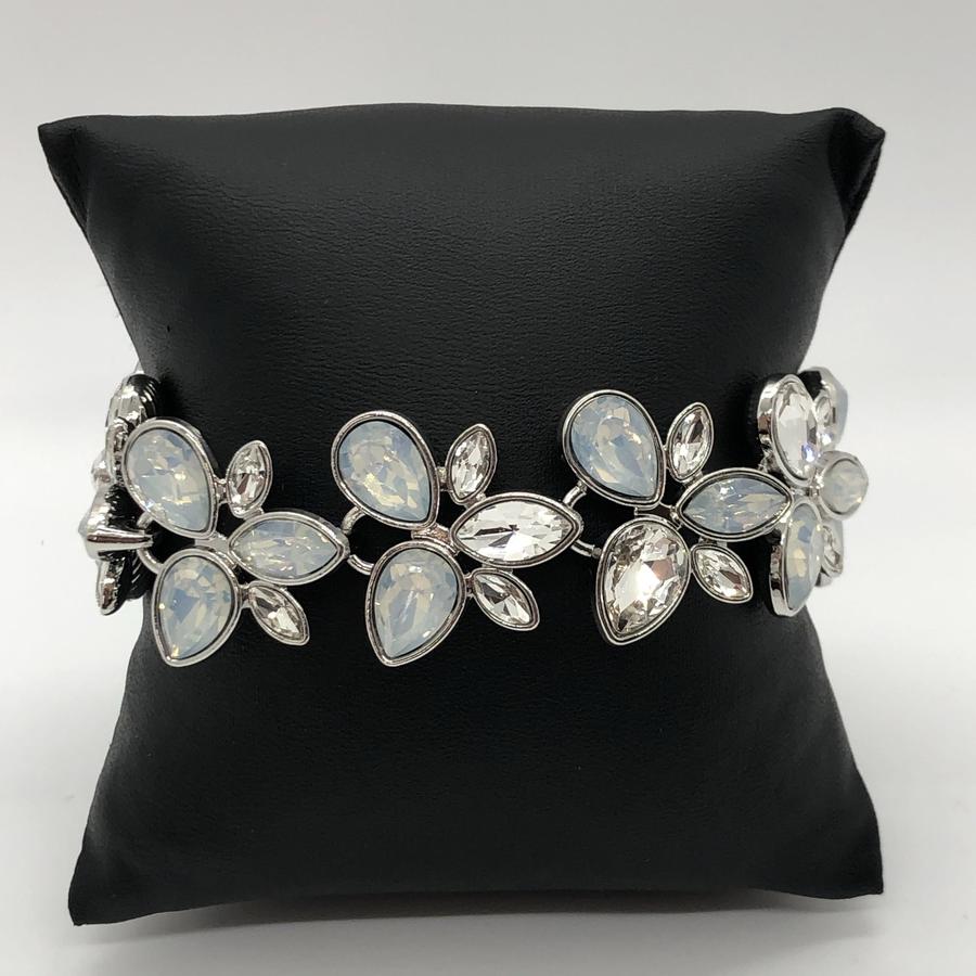 Featuring elegant teardrop cuts, opalescent rhinestones coalesce into a glamourous lure. Features an adjustable clasp closure.