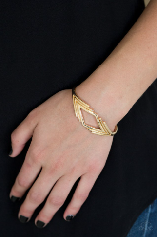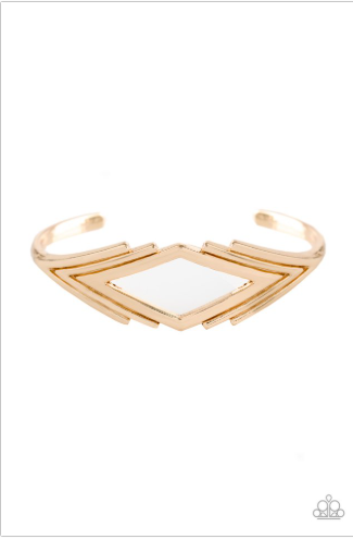 Brushed in a high-sheen finish, glistening V-shaped frames join into a dainty cuff. The airy center allows the skin to peek beneath the geometric frame for a natural finish.