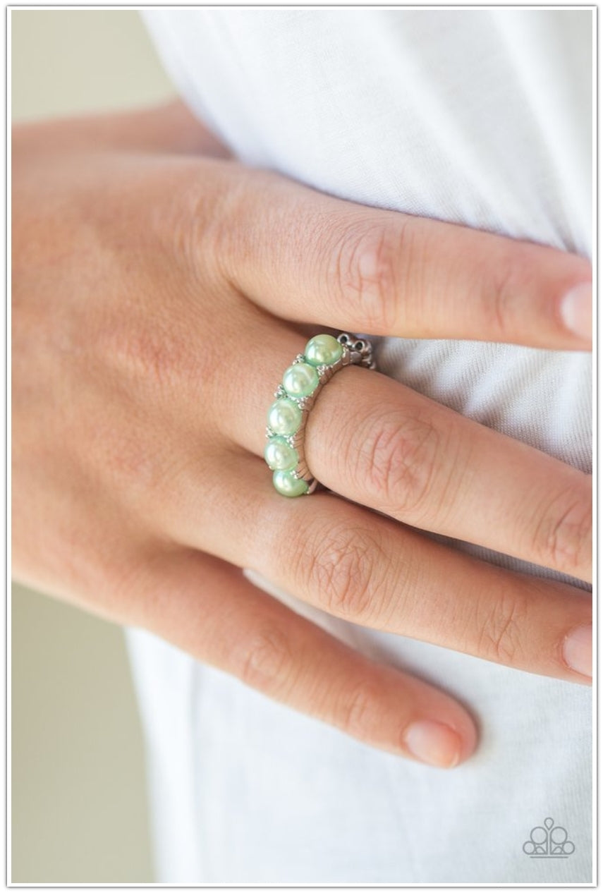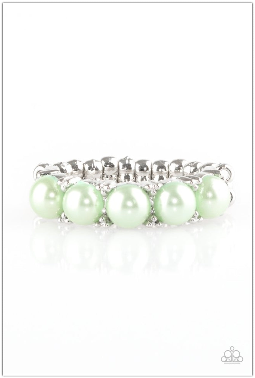 Bubbly green pearls are encrusted along a dainty silver band for a whimsical look. Features a dainty stretchy band for a flexible fit.