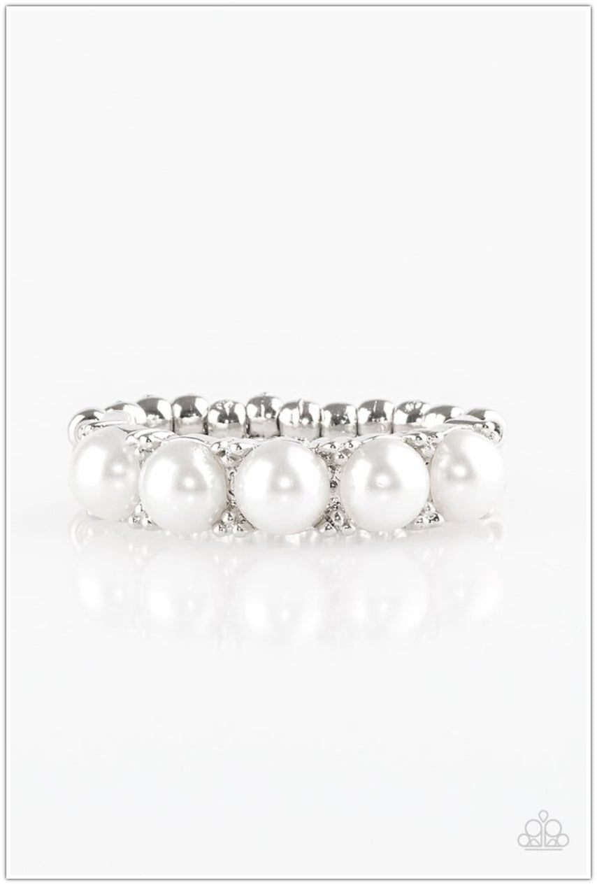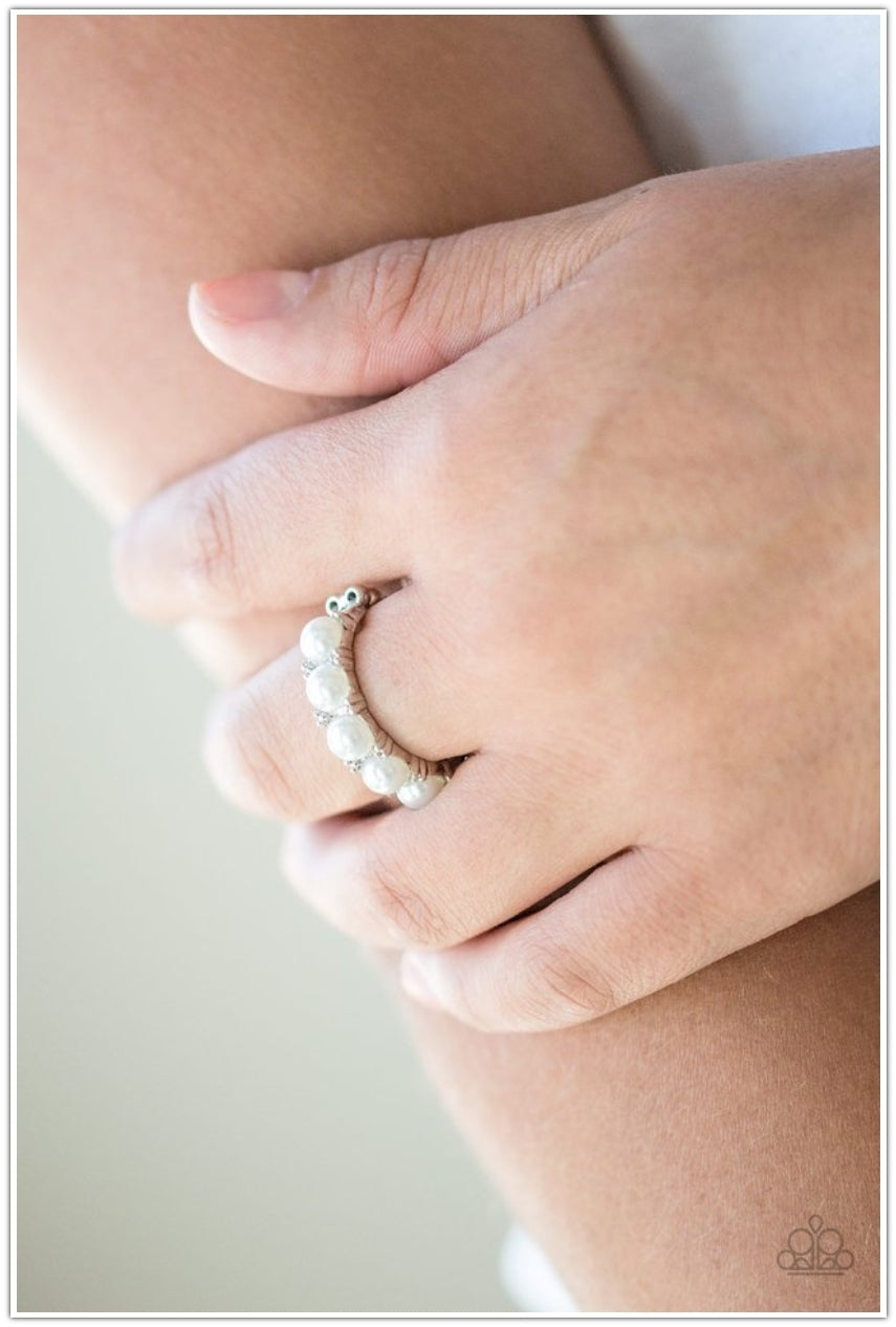 Bubbly white pearls are encrusted along a dainty silver band for a whimsical look. Features a dainty stretchy band for a flexible fit.