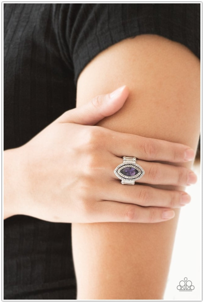 Embossed and studded in tribal inspired patterns, a tilted square frame sits atop the finger. A vivacious orange stone dots the center of the frame for a seasonal finish. Features a stretchy band for a flexible fit.