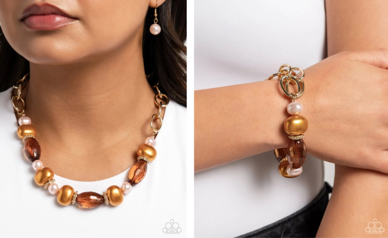 Pearly Patron (necklace) & Pearly Passenger (bracelet) - Brown