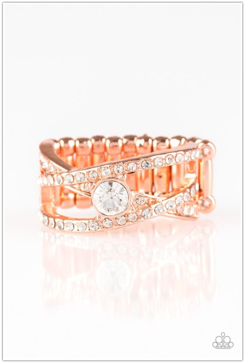Brushed in shiny white accents, a textured silver frame arcs across the finger for a seasonal look. Features a stretchy band for a flexible fit.