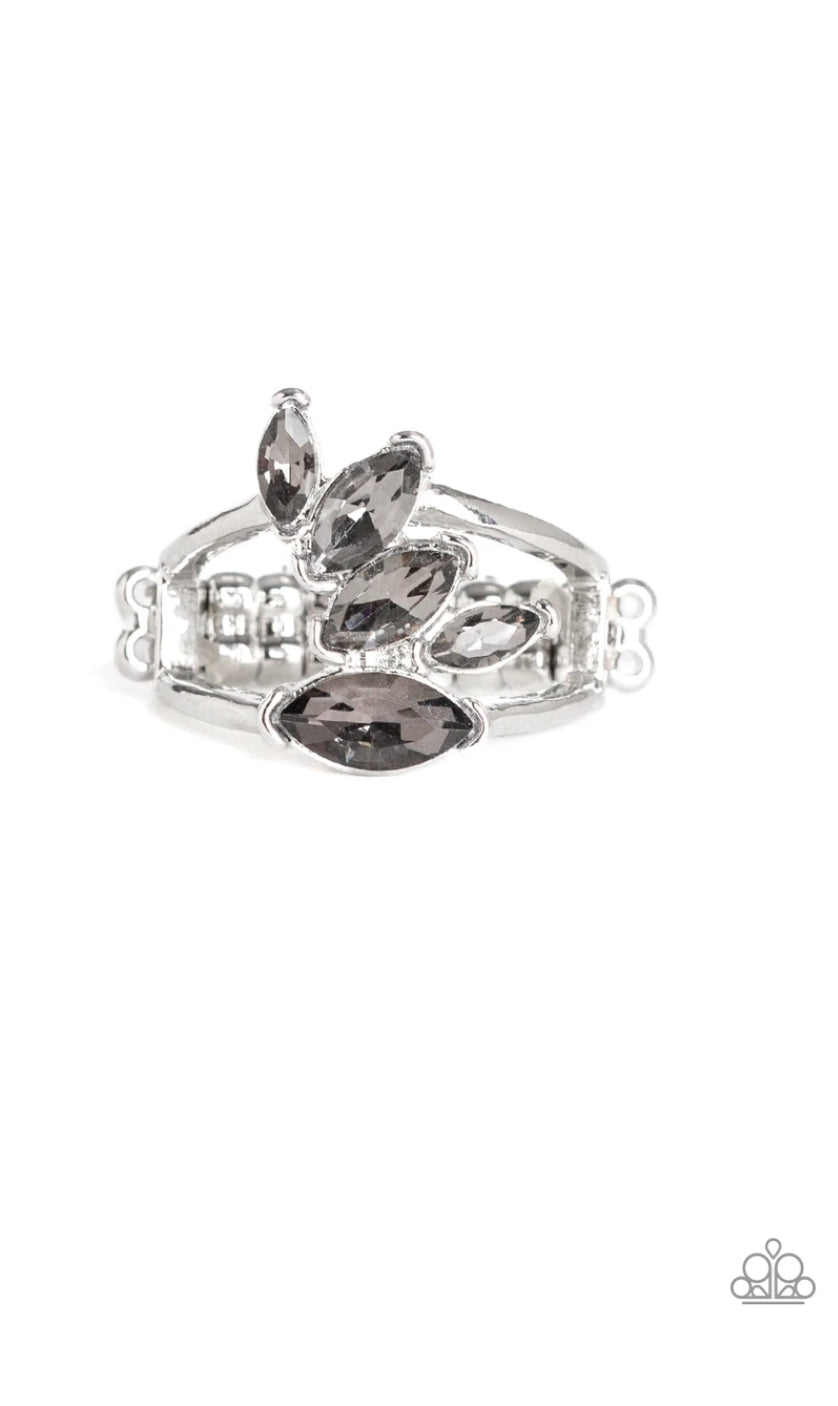 Featuring regal marquise style cuts, a collection of smoky rhinestones fan out across the finger for a stunning fashion. Features a dainty stretchy band for a flexible fit.