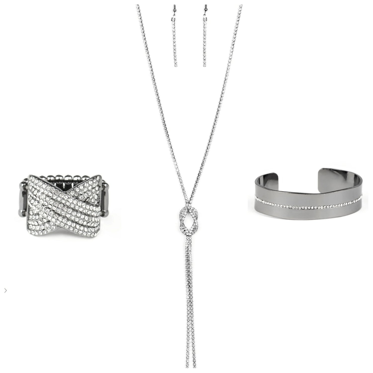 SET: Knockout Knot (Necklace) Girl Boss Glitter (Ring), and Raw Razzle (Bracelet) - Black