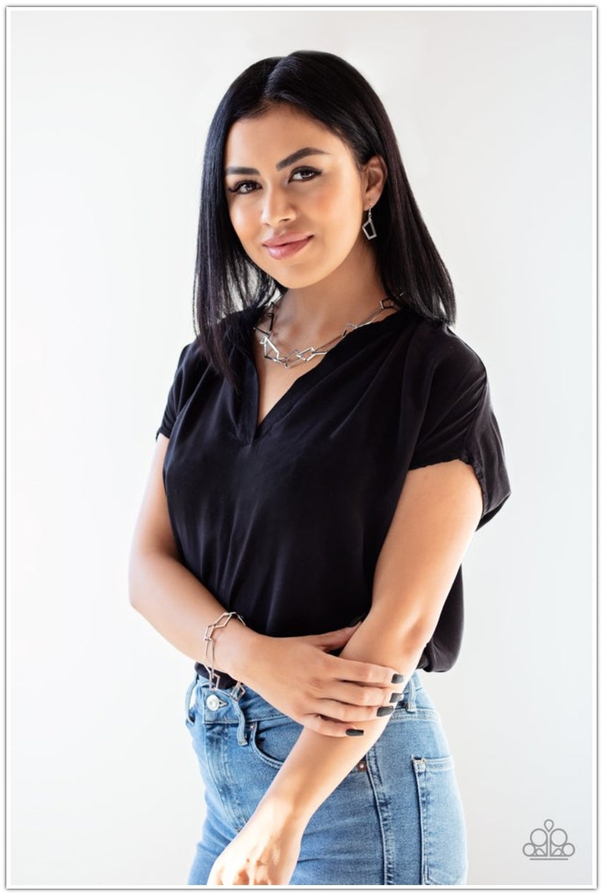 SET: Shattering Records - Silver (Necklace) & Shattered Shine - Silver (Bracelet) [EACH PIECE SOLD SEPARATELY]