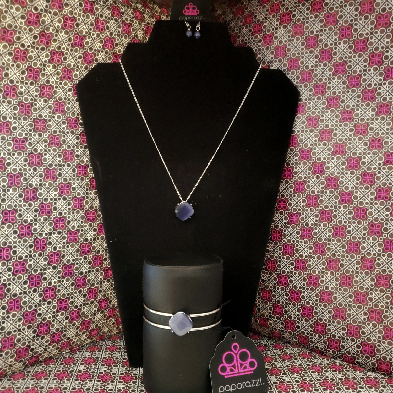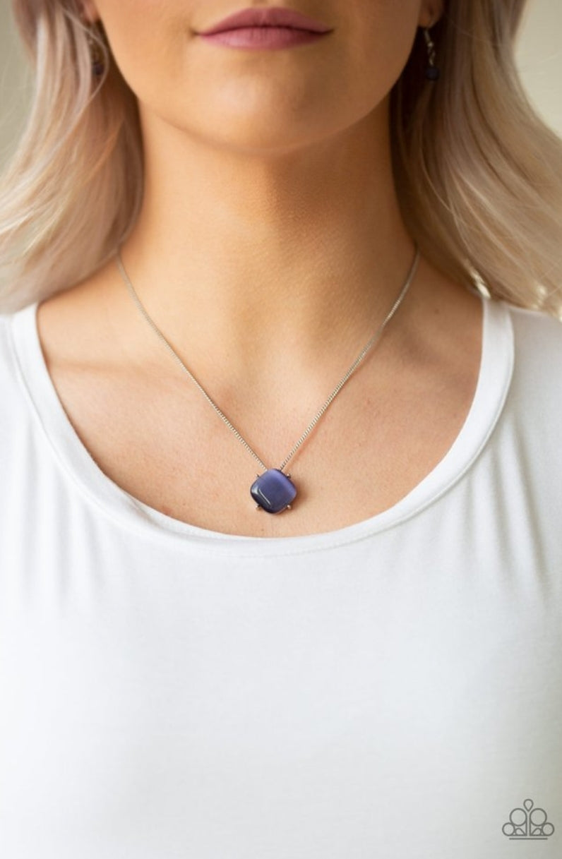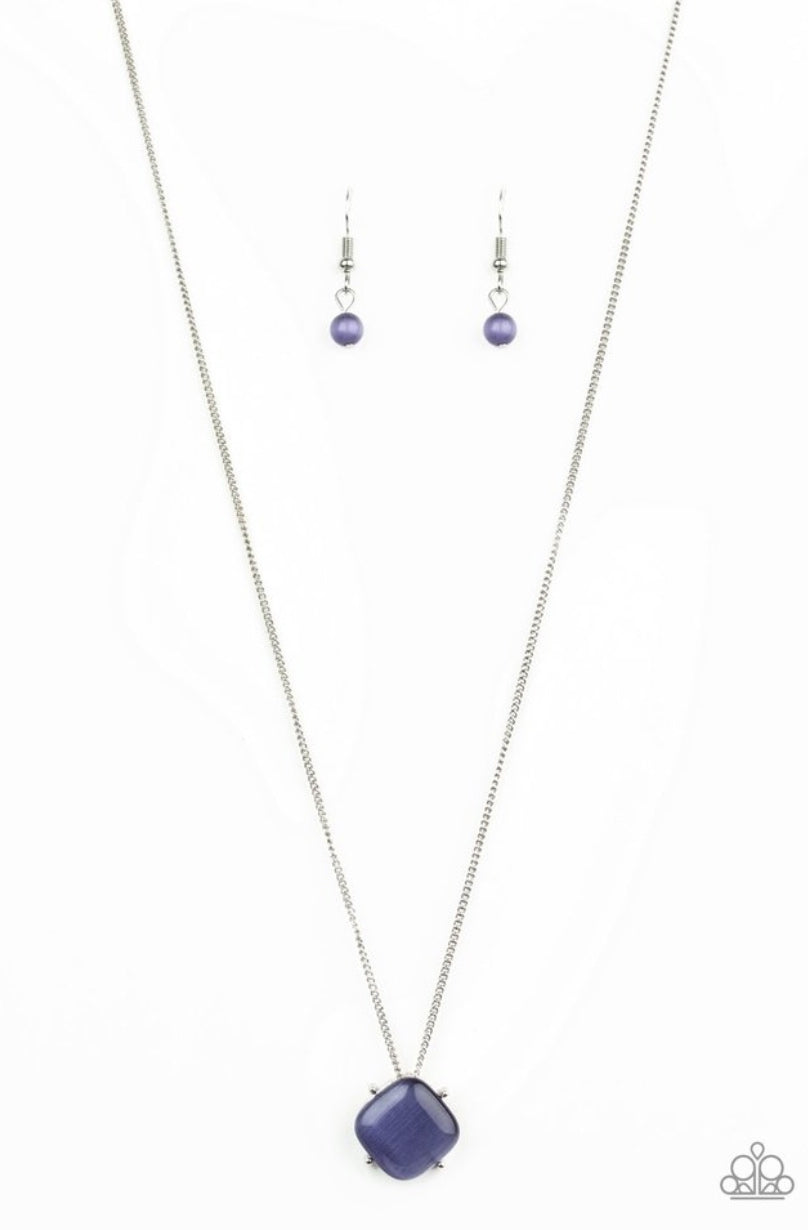 NECKLACE: Chiseled into a tranquil square, a glowing purple moonstone pendant swings below the collar for a colorfully refined look. Features an adjustable clasp closure.