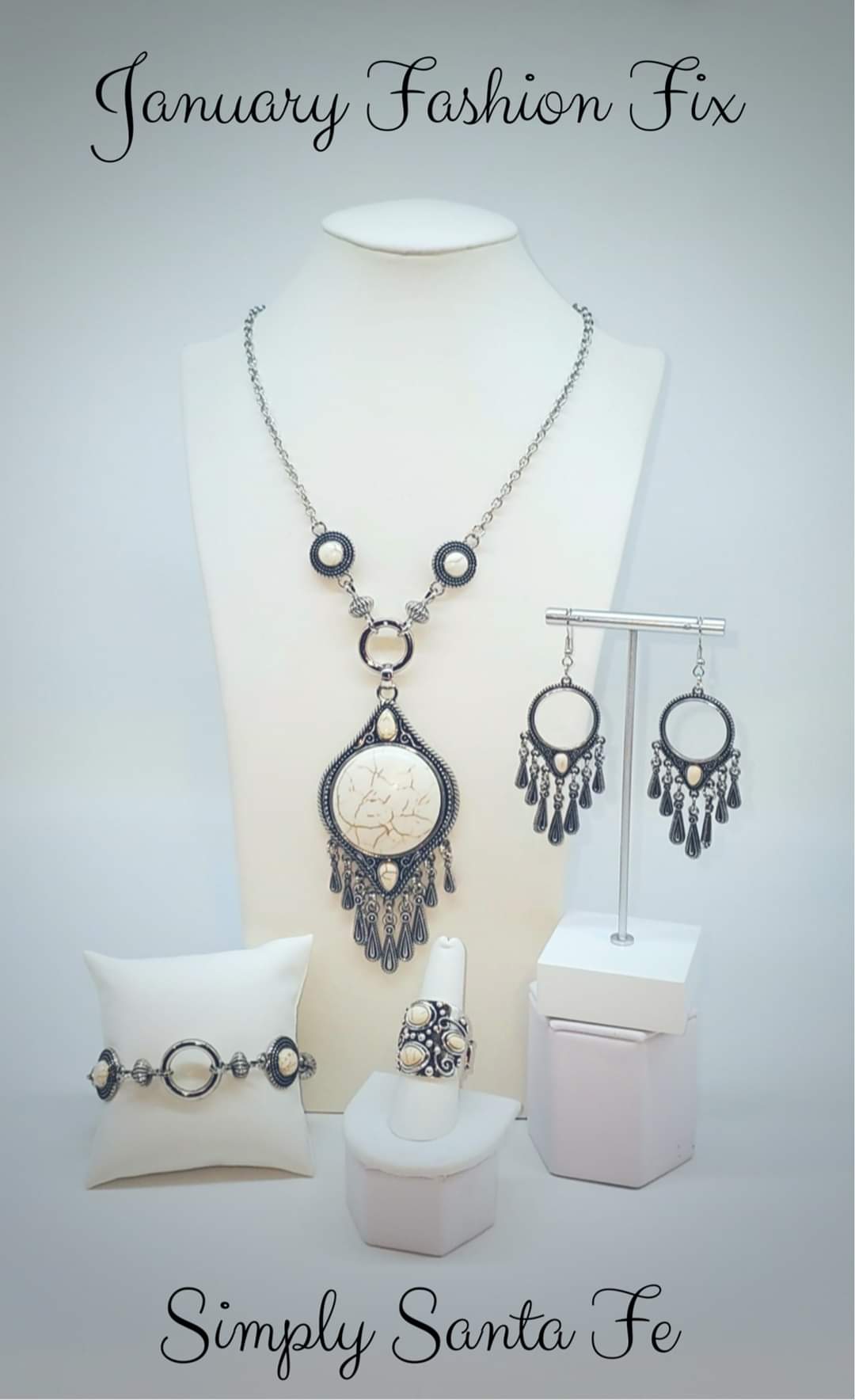 EARRINGS: Ranger Rhythm - White A decoratively studded silver hoop flares dramatically at the bottom, where a small white stone accent makes its debut. A musical fringe of decorative silver teardrop beads swings from the bottom of the frame, adding musical movement. Earring attaches to a standard fishhook fitting. Item #P5SE-WTXX-138WR