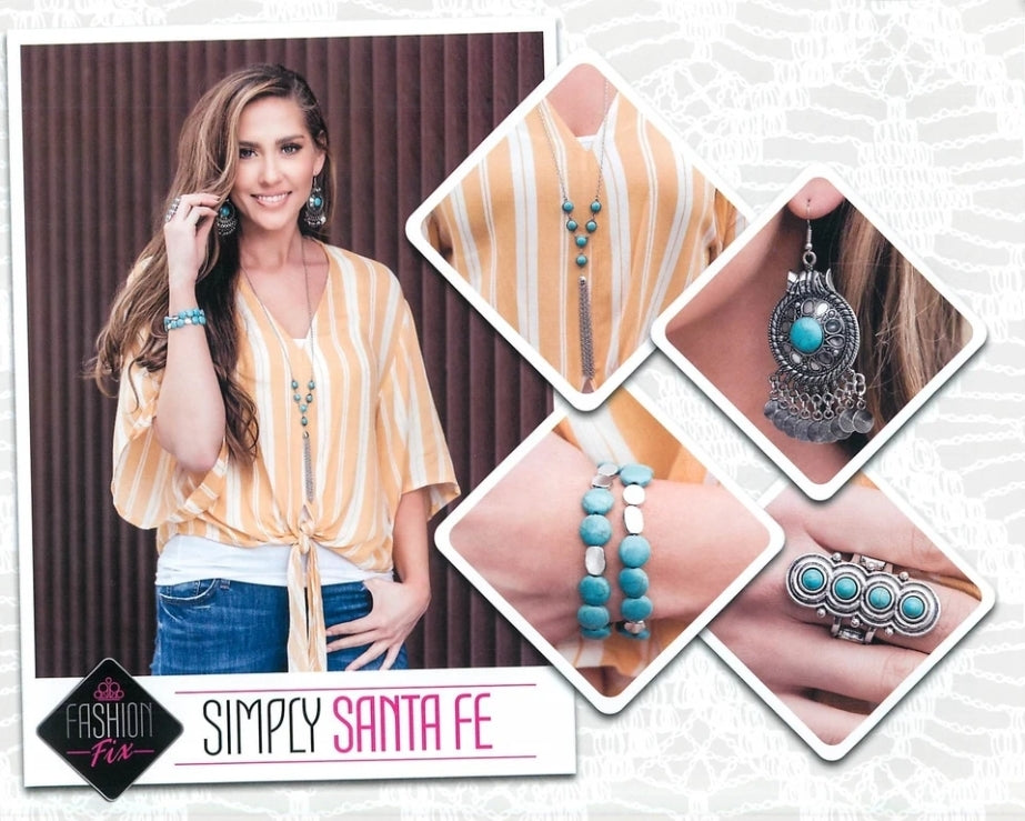 Earring: "Rural Rhythm" (P5SE-BLXX-233SZ)- A polished turquoise stone is pressed into the center of a silver frame stamped in seasonal floral patterns. Textured silver discs dangle from the bottom of the frame, creating a whimsical fringe. Earring attaches to a standard fishhook fitting.
