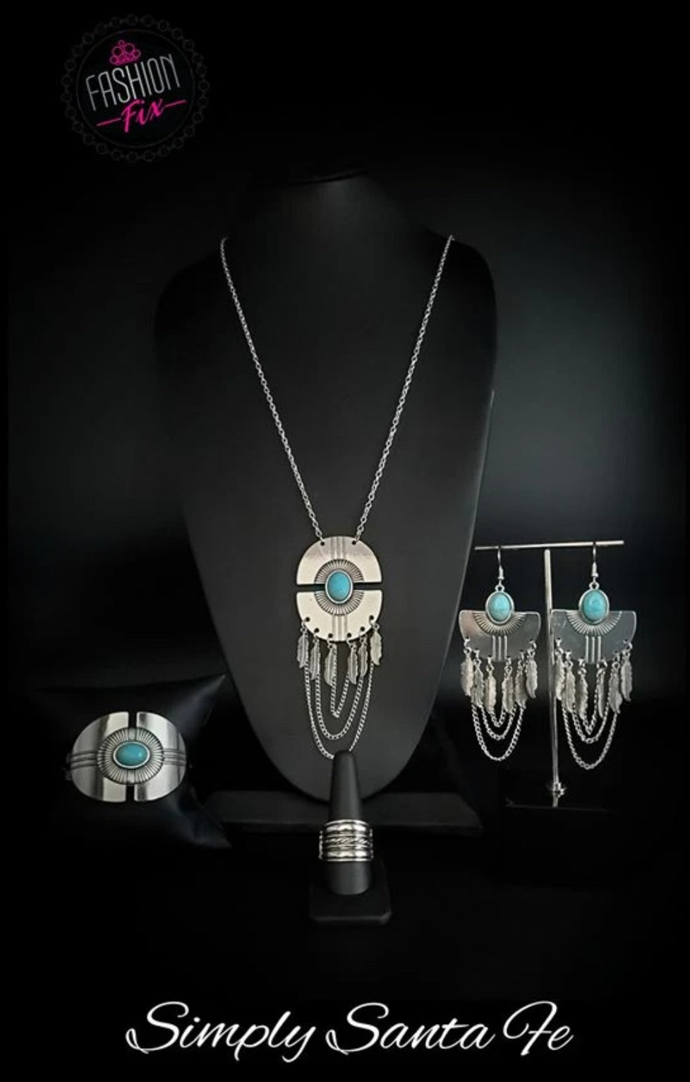 Necklace: "Desert Culture" - A fringe of antiqued silver feathers and shimmery silver chains dangle from the bottom of a stacked silver frame fanning with striking texture. A smooth turquoise stone dots the tribal inspired pendant for an earthy finish. Features an adjustable clasp closure.