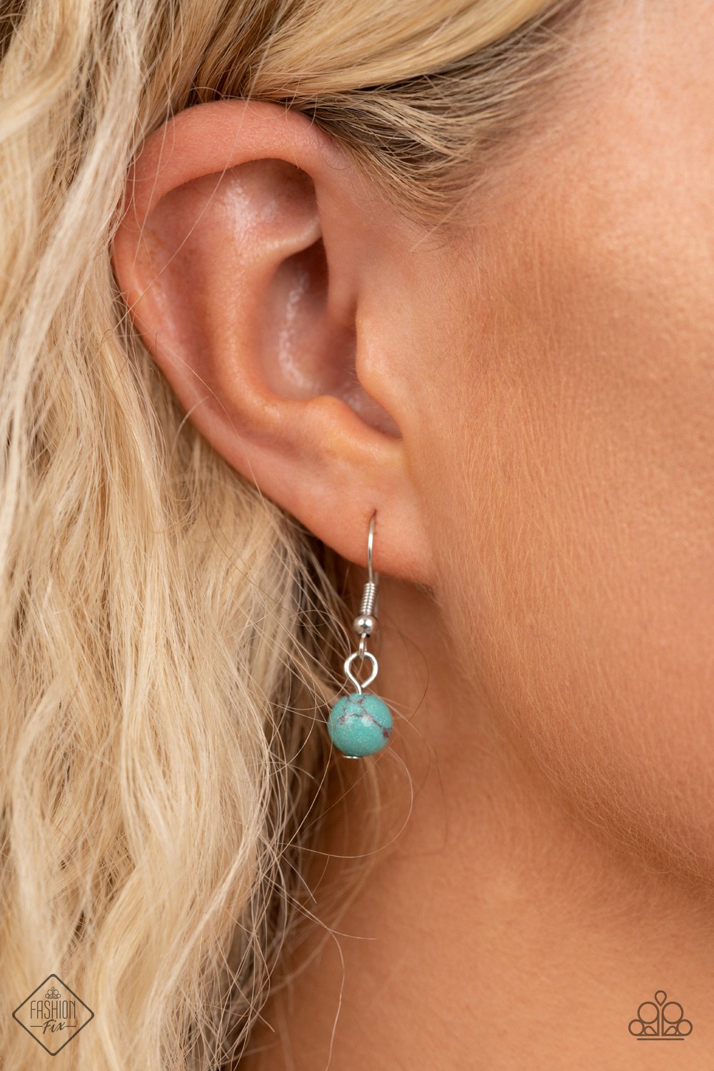 NECKLACE - "Artisan Adventure" (P2SE-BLXX-495DM)- Featuring a studded and textured silver frame, an asymmetrical turquoise stone pendant glides along a rounded silver snake chain below the collar for an authentically artisan-inspired fashion. Features an adjustable clasp closure.