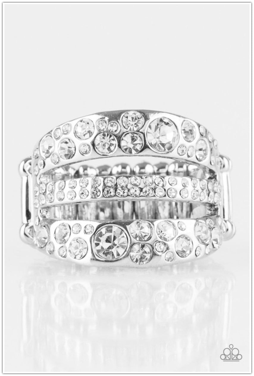 A shiny plum bead is pressed into a dainty silver band radiating with studded and swirling details for a seasonal look. Features a dainty stretchy band for a flexible fit.