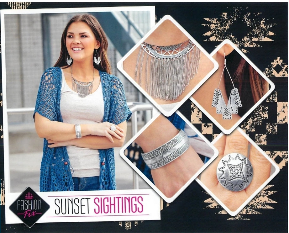 Necklace: "Empress Excursion" (P2ST-SVXX-075MF)- A stenciled silver crescent stamped in tribal inspired patterns swings unapologetically below the collar. A curtain of shimmery silver chains cascades from the bottom of the dramatic pendant, creating a bold fringe with endless movement. Features an adjustable clasp closure.