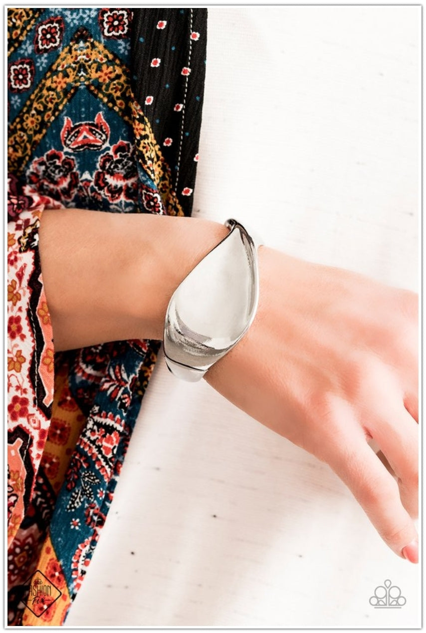 Bracelet - "Retro Reflections" - A thick silver bar delicately twists across the wrist, coalescing into a substantial wavy cuff-like bracelet. Features a hinged closure.