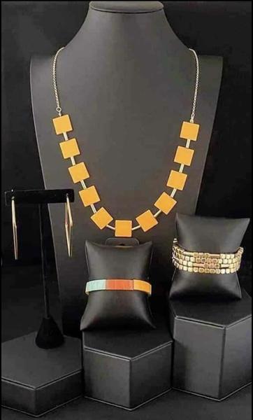 Bracelet: Metro Materials - Gold == Item #P9BA-GDXX-085ZX == Lightweight and flirty, two strands of golden square beads interspersed with gold cylinders, are paired with two strands of gold cubes. The four stretchy bracelets come together to create an irresistible stack of metallic mayhem.