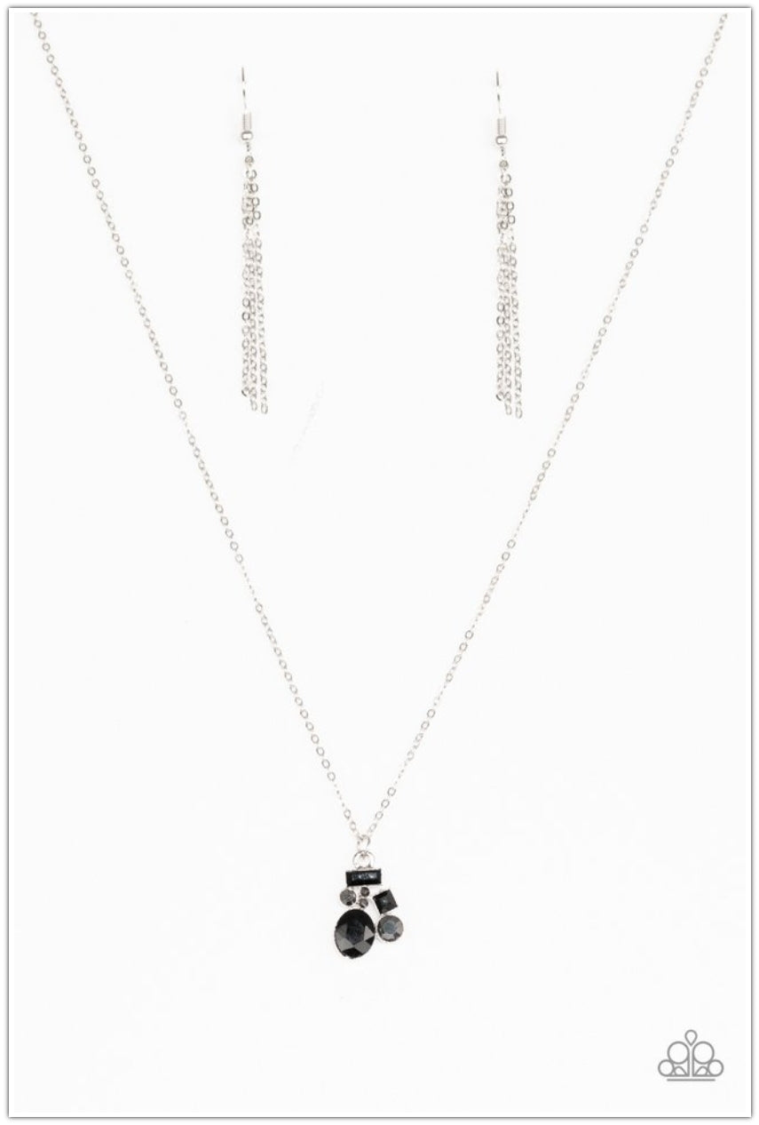 Varying in shape and size, glittery black and hematite rhinestones coalesce into a sparkling pendant below the collar for a timeless look. Features an adjustable clasp closure.