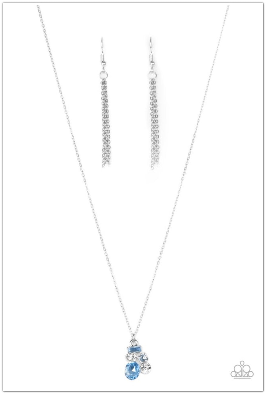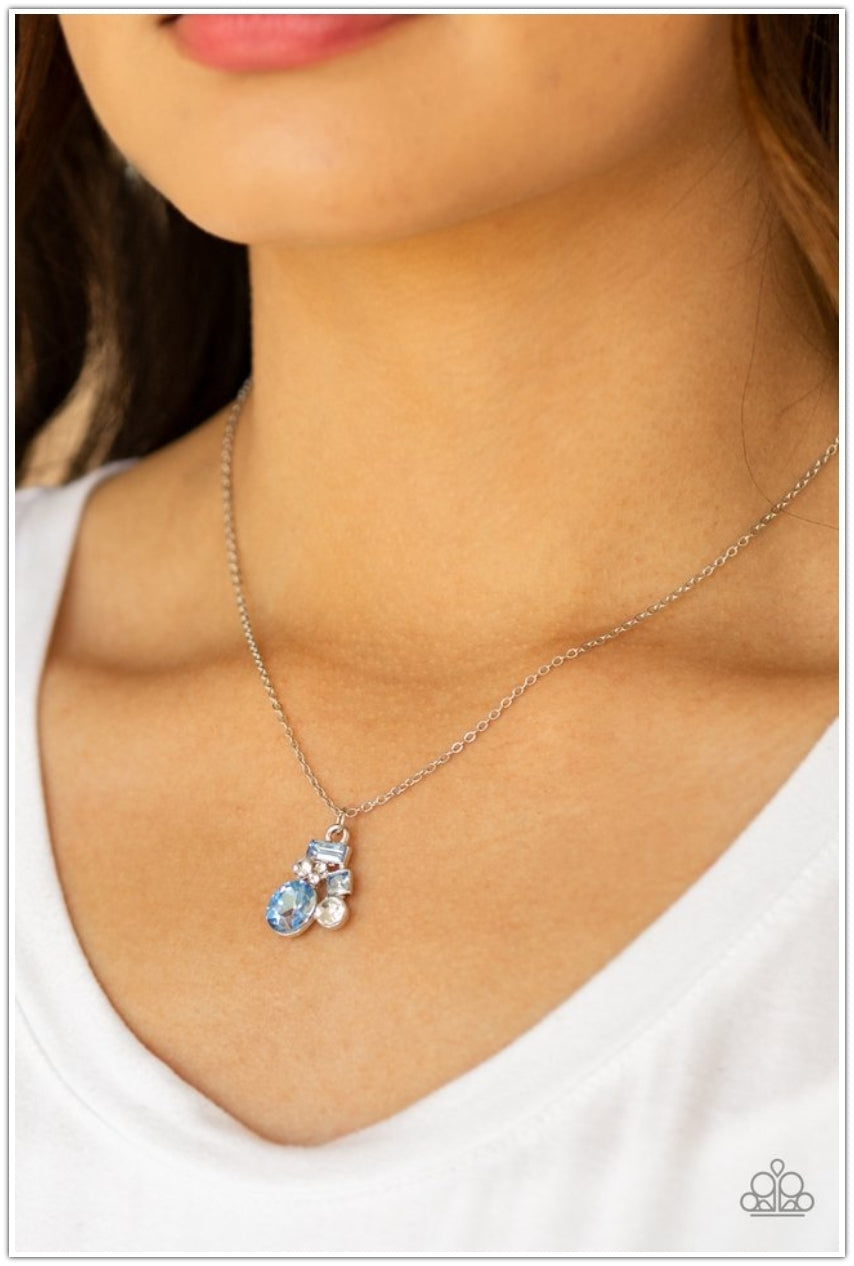 Varying in shape and size, glittery blue and white rhinestones coalesce into a sparkling pendant below the collar for a timeless look. Features an adjustable clasp closure.