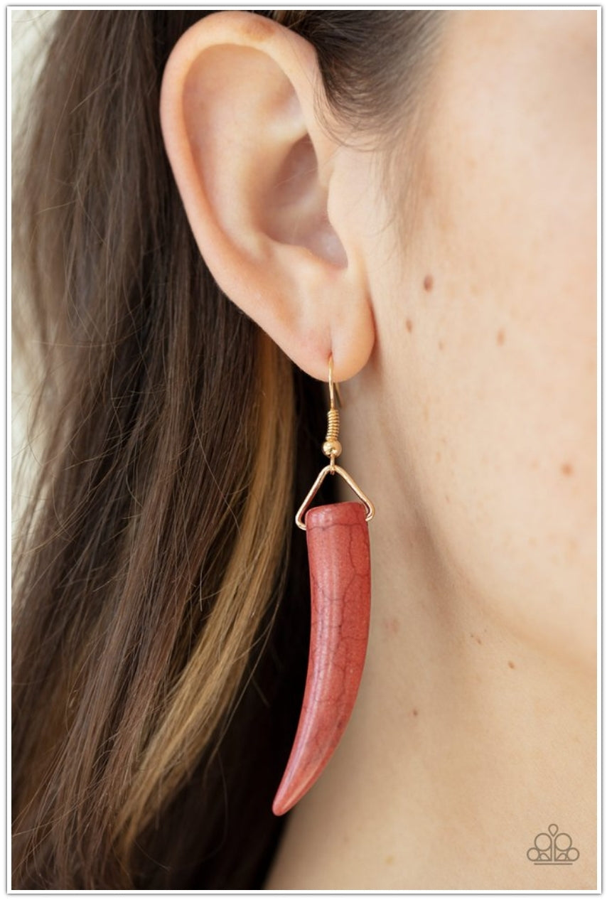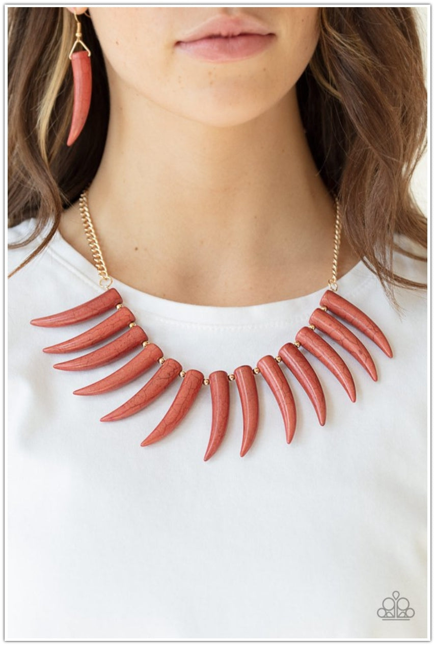 Infused with dainty gold beads, tusk-shaped Cinnamon Stick stone beads are threaded along an invisible wire below the collar, creating a wild fringe. Features an adjustable clasp closure.