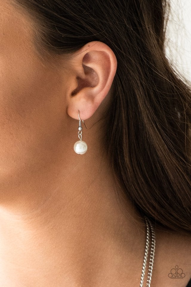 Varying in size, pearly white and oversized silver beads give way to sections of bold silver chains for a flawless look. A lobster clasp hangs from the bottom of the design to allow a name badge or other item to be attached. Features an adjustable clasp closure.