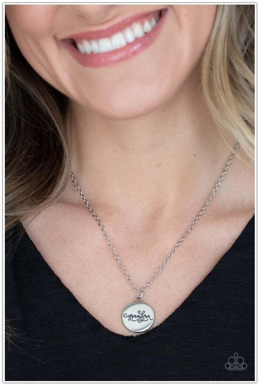 Stamped in the word, "grandma", in a whimsical script, a dainty silver disc swings below the collar for a classic look. Features an adjustable clasp closure.