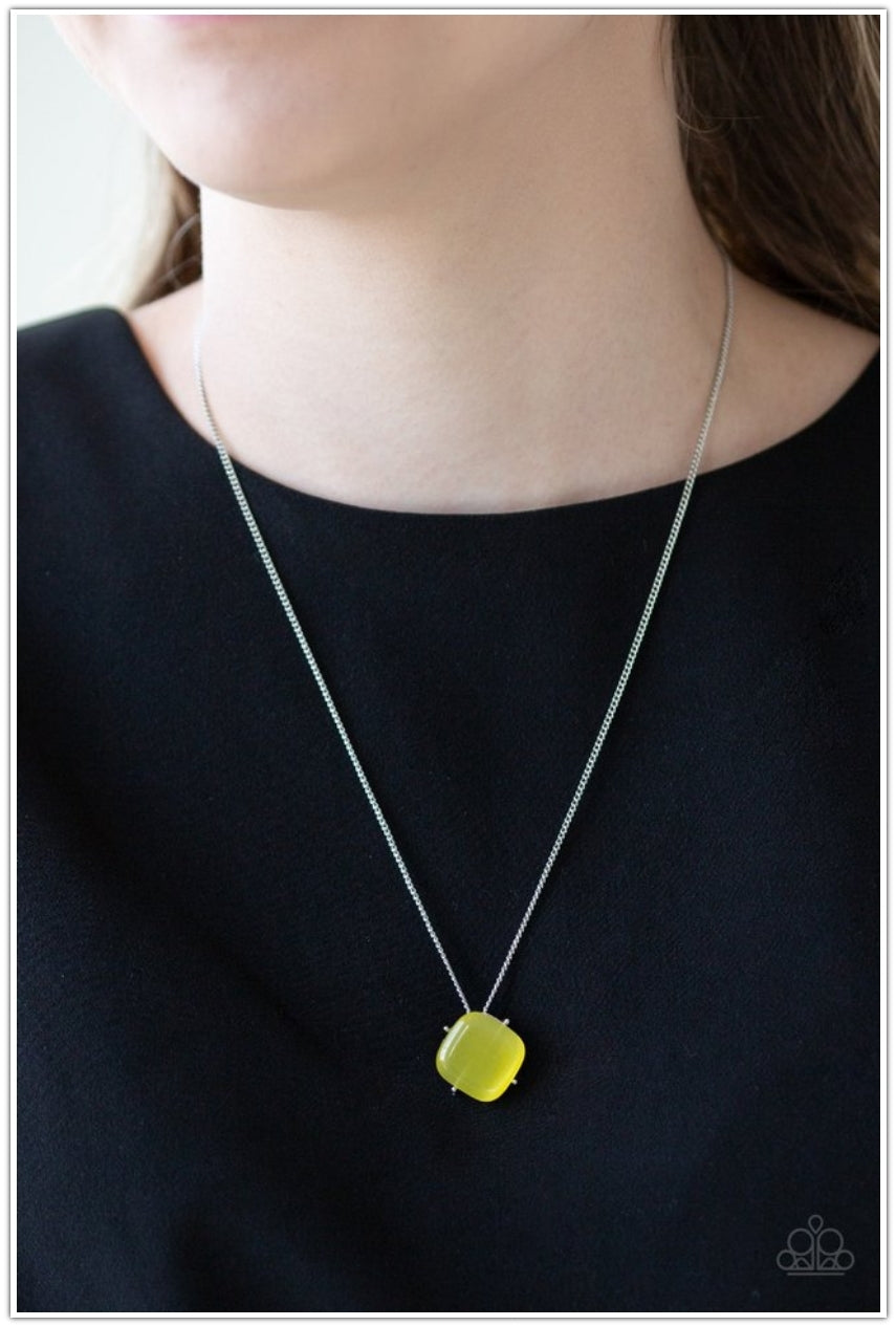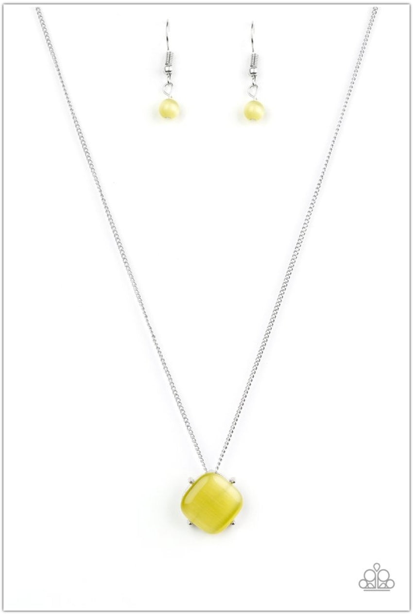 Chiseled into a tranquil square, a glowing yellow moonstone pendant swings below the collar for a colorfully refined look. Features an adjustable clasp closure.